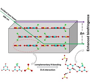 图:互补氢键调控下的π共轭层状结构实现双折射的大幅提升